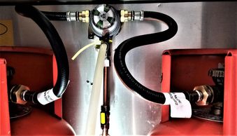 Whenever a new LPG regulator is replaced, gas tests MUST be done to ensure it's installed correctly and safely. This customer wanted to use two LPG cylinders so that if gas runs out of one, a very quick turn of the top dial allows gas to come from the other. I can easily convert a one cylinder system into a two.